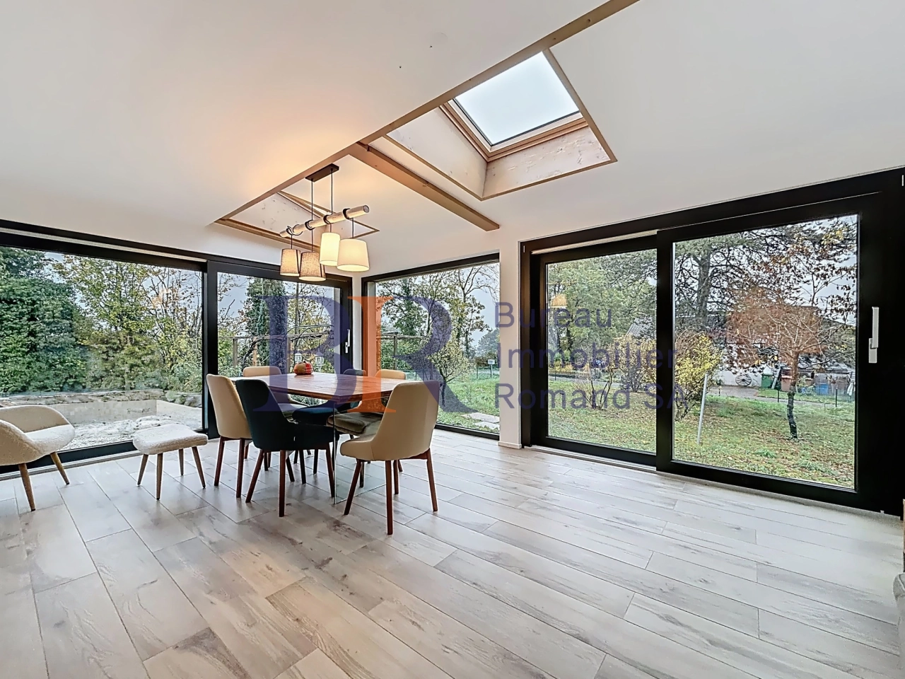 Le séjour lumineux, ouvert sur de larges baies vitrées, ainsi que la cuisine moderne avec coin repas intégré, créent des espaces de vie conviviaux et accueillants. Les chambres spacieuses et bien orientées bénéficient d’une belle luminosité. À l’arrière, une grande terrasse sans vis-à-vis, accessible depuis les chambres du demi-niveau, offre une vue dégagée sur un verger et la forêt au loin. L’essentiel du terrain se développe à l’avant de la maison, offrant un vaste jardin arboré idéal pour profiter de la nature et d’activités en extérieur.